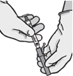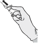 · en tenant la seringue avec l'aiguille pointée vers le haut, poussez doucement le piston jusqu'à ce que le médicament soit au sommet de la seringue. Il ne doit pas y avoir d'air dans le cylindre,