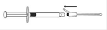 · Retirez l’emballage extérieur de l’aiguille protégée (BD SafetyGlide). Fixez l’aiguille protégée sur la connexion Luer (voir figure 2).