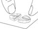 Placer les pouces (ou les index) des deux mains en même temps sur les côtés gauche et droit de la barre de sécabilité la plus courte du comprimé. Appuyer avec force pendant un court instant avec les deux pouces (ou index) sur les côtés gauche et droit de l'extérieur du comprimé jusqu'à ce qu'il se brise en deux parties égales. |